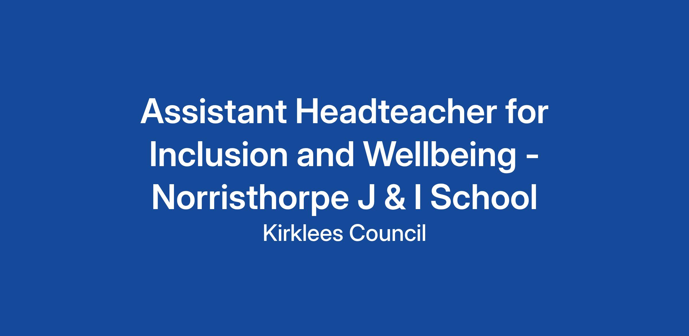 Assistant Headteacher for Inclusion and Wellbeing - Norristhorpe J & I School