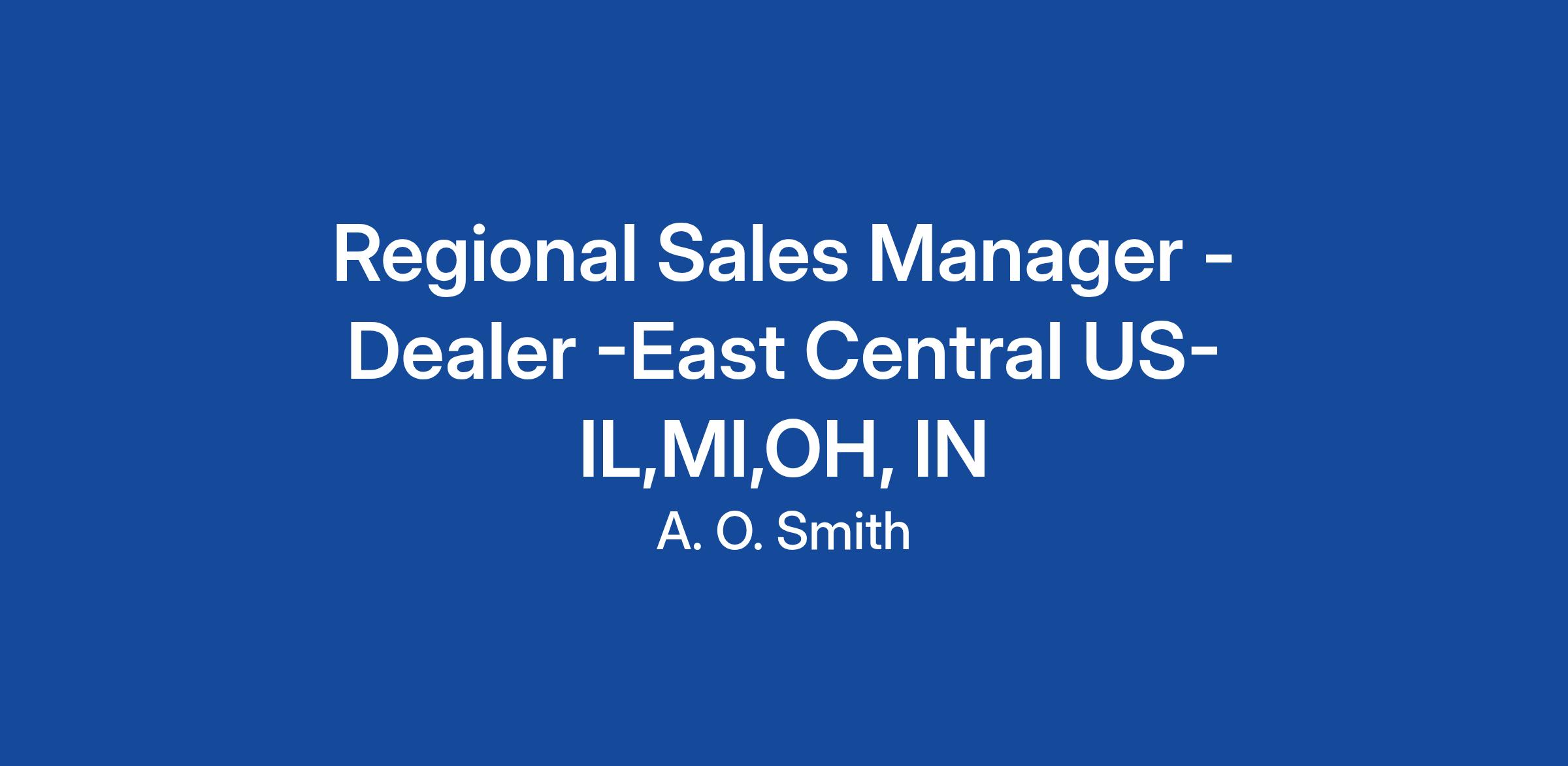 The Regional Sales Manager (RSM) Dealer in East Central- US. This water treatment systems role specializes in business development by growing A. O. Smith Water Treatment’s Dealer customer base and developing current customers via in-field support, training, and coaching of best practices. The RSM is to be a trusted advisor to our customers for all facets of their business from lead generation to post sale support. The RSM will leverage A. O. Smith owned Water Treatment’s businesses resources and value-added programs to drive success and loyalty within their assigned market and gather voice of customer feedback to assist in the creation of new programs and solutions to tackle future water or business challenges. The RSM will exclusively focus and work within A. O. Smith Water Treatment’s Water Quality Dealer Channel and support the specific brands aligned to that channel. We offer our customers unique brands, products, programs, and support to help them become respected experts within their served communities. The RSM will bridge the gap between A. O. Smith Water Treatment and the customer to ensure mutual sustained success in tackling their market’s water challenges and opportunities. East Central territory states: MI, IL, IN, OH.